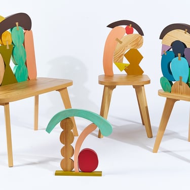 The first of the Abstract Assembly collection, a solid wood chair. Handmade with traditional carpentry, painted in bespoke colour and finished in lacquer. Enquire to discuss colours and quantities.