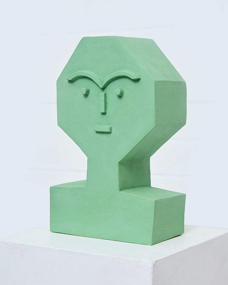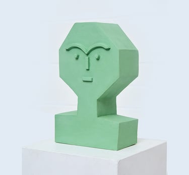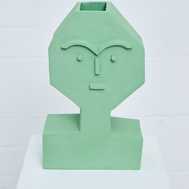 A head shaped planter or Vase. Hand built in Stoneware and glazed inside and out.